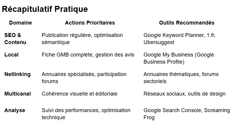 Ces stratégies gratuites, combinées intelligemment, peuvent transformer votre visibilité web en 2025. L'investissement principal ? Votre temps et votre régularité dans l'application de ces techniques.